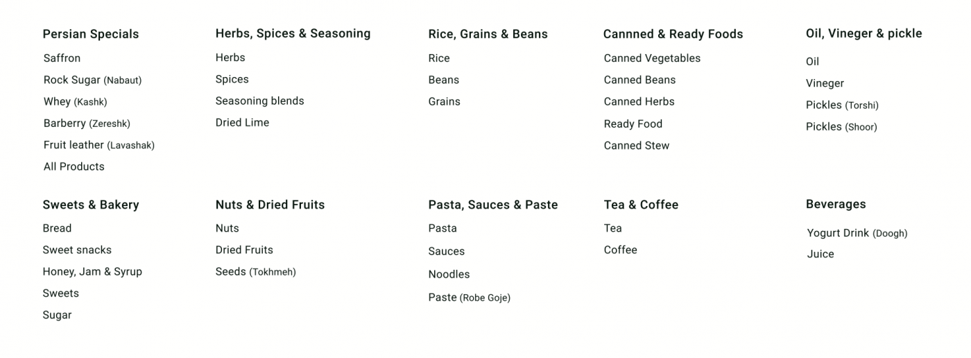 We looked at several online Persian& Middle Eastern Groceries, The main differences that we noticed were.
