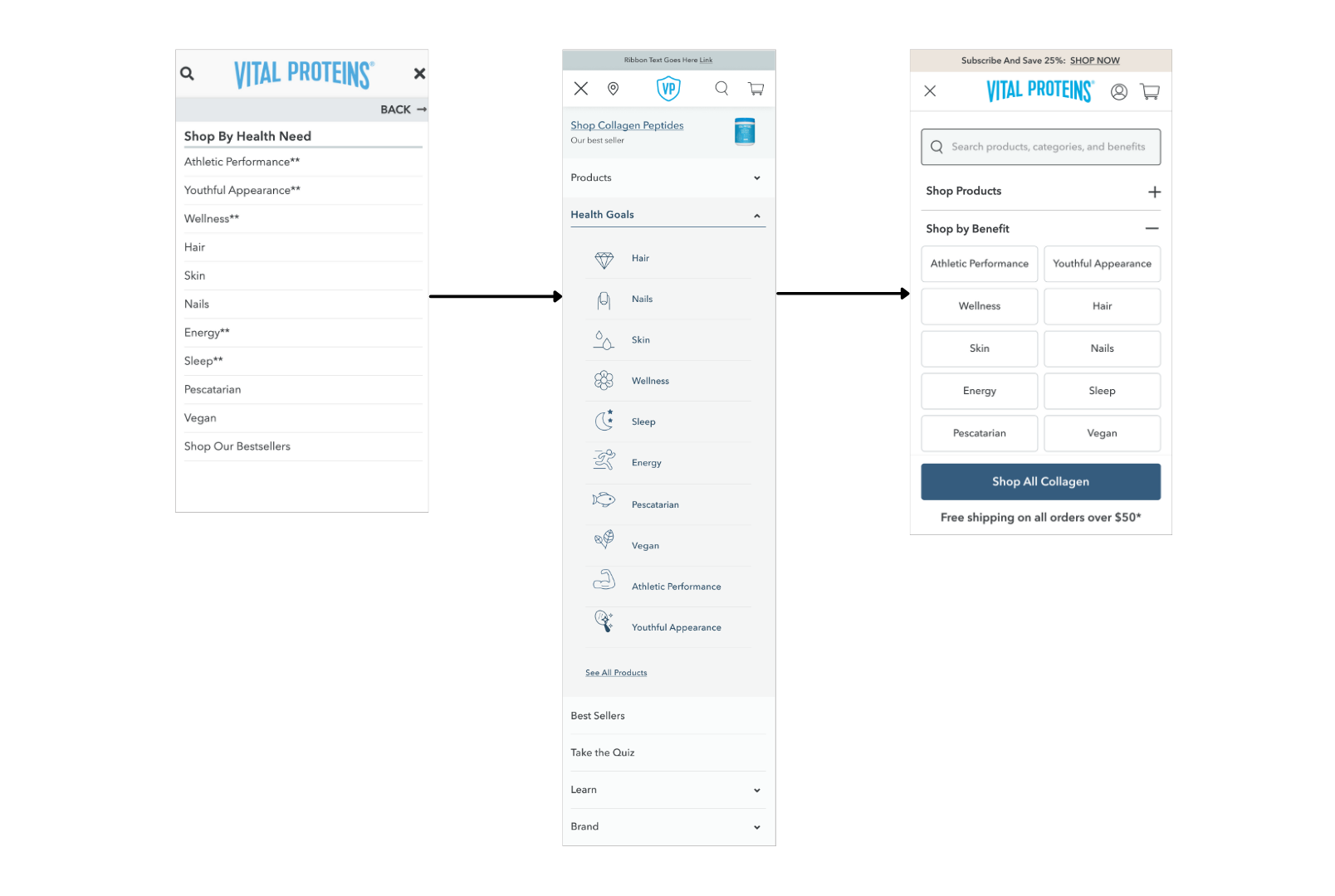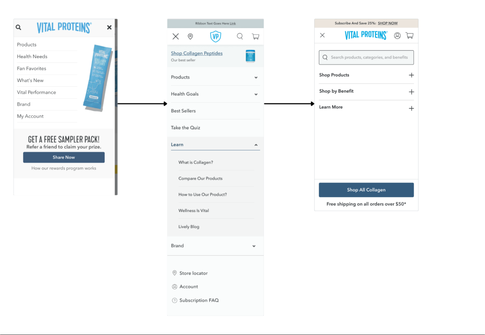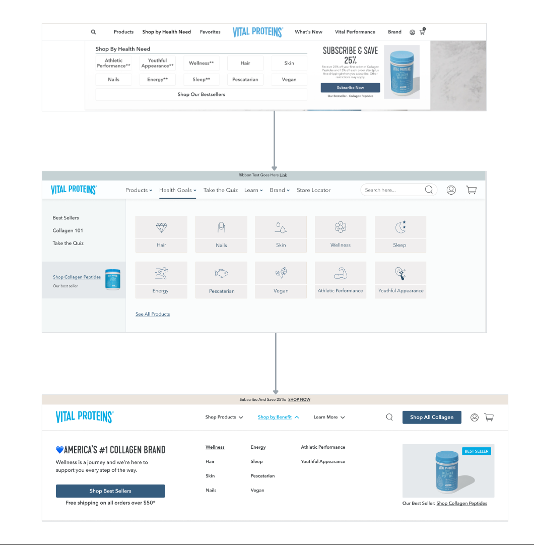 The main website navigation/menu has been redesigned to simplify the path to purchase and enhance product exploration. This expands the company’s reach and aligns with two key DTC objectives: