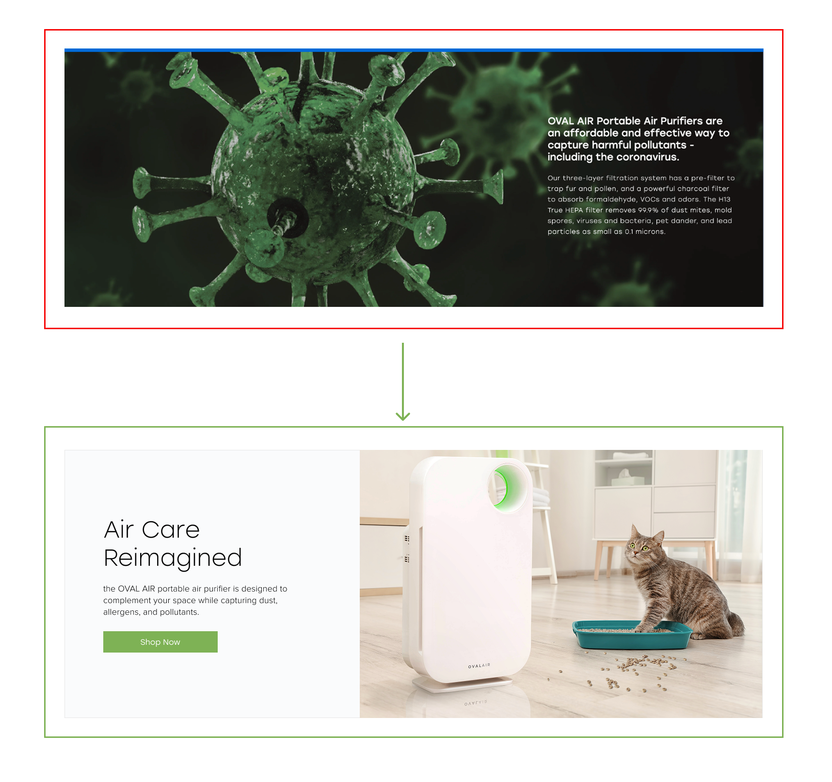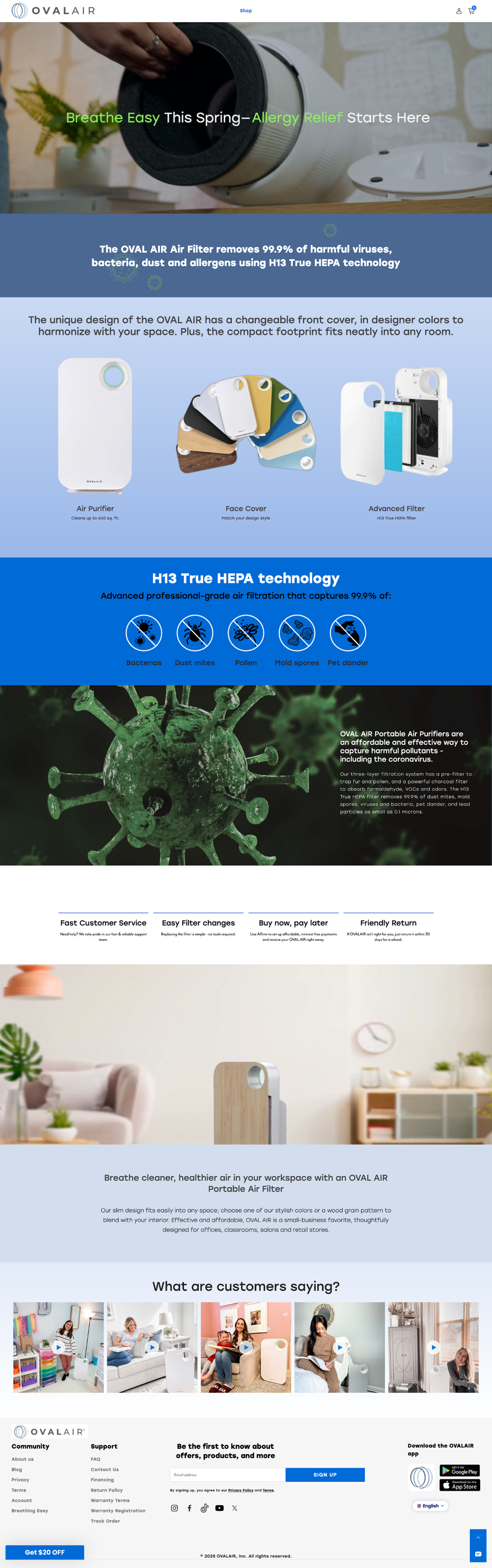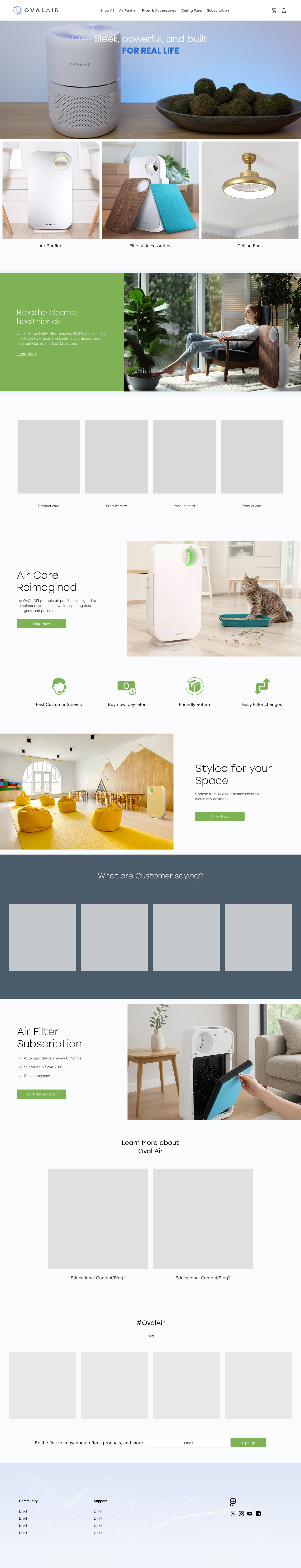 Oval Air, a premium air purifier brand, had a content-heavy website that resembled a blog more than a shoppable experience. Despite strong product quality, the site lacked structure to drive purchases or build lasting customer relationships.